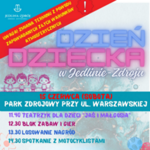 Opady deszczu zmusiły organizatorów do zmiany terminu wydarzenia z okazji Dnia Dziecka na 15 czerwca 20024 roku.