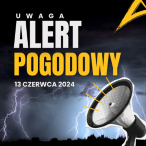 Informujemy, w dniu 13 czerwca 2024 od godziny 12:00 do 20:00, prognozowane są burze, którym mogą towarzyszyć silny wiatr, ulewny deszcz oraz grad.